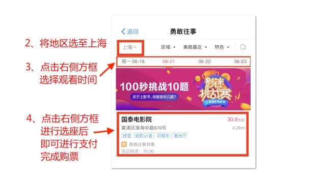 将地区选至上海,随后选择时间和座位即可购票 购买了电影《勇敢往事》 超前点映的票之后,如何取票?