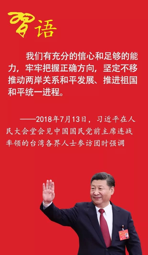 ![]() ![]() 7月13日,中共中央总书记习近平在北京人民大会堂会见中国国民党前主席连战率领的台湾各界人士参访团。 7月13日上午,中共中央总书记习近平在人民大会堂会见中国国民党前主席连战率领的台湾各界人士参访团时强调,大道之行、人心所向,势不可挡。我们有充分的信心和足够的能力,牢牢把握正确方向,坚定不移推动两岸关系和平发展、推进祖国和平统一进程。希望两岸同胞共同努力,坚持体现一个中国原则的“九二共识”,坚决反对和遏制“台独”,扩大深化两岸各领域交流合作,增进同胞亲情福祉,在新时代携手同心书写中华民族伟大复兴新篇章。 习近平指出,“不畏浮云遮望眼,自缘身在最高层。”只要大家登高望远,就能看清主流、把握大势,共同推动两岸关系克难前行。我们对两岸关系未来充满信心,因为推动两岸关系和平发展、携手致力民族复兴,是符合民族整体利益、顺应时代潮流、造福两岸同胞、得到两岸同胞拥护的正确道路;因为不管经历多少风雨,两岸同胞在民族、文化认同和情感上从未分离;因为尽管数十年来两岸关系跌宕起伏,但总体趋势是向前发展的;因为两岸是密不可分、休戚与共的命运共同体。两岸同胞对更加美好生活的共同追求,对两岸关系走近走好的一致向往,是任何人都阻挡不了的。 习近平指出,“不忘初心,方得始终。”正确道路要坚持走下去。特别是在当前台海形势下,两岸同胞更要坚定信心,团结前行。 第一,坚定不移坚持“九二共识”、反对“台独”。“台独”损害国家主权和领土完整,破坏台海和平稳定,只会给两岸同胞带来祸害。我们决不容忍“台独”势力兴风作浪,决不容许任何“台独”图谋得逞,一切分裂祖国的行径都是注定要失败的!两岸同胞要坚决反对和遏制“台独”分裂图谋和行径,以实际行动展现正义的力量和声音。 第二,坚定不移扩大深化两岸交流合作。扩大交流,深化合作,符合两岸同胞共同利益,对两岸都有利。两岸同胞对一些问题的看法分歧,不应影响两岸正常交流合作,更不应成为阻挠限制两岸交流合作的借口。我们完全理解台湾同胞的特殊心态,充分尊重台湾同胞现有的社会制度和生活方式。同样,大陆同胞历经长期努力、不懈奋斗,走上了中国特色社会主义道路,取得了举世瞩目的巨大成就,也值得台湾同胞尊重。两岸同胞要推己及人、将心比心,增进理解认同,实现心灵契合。 第三,坚定不移为两岸同胞谋福祉。两岸一家亲,都是中国人,台湾同胞是我们的骨肉天亲。改革开放40年间,两岸同胞始终同舟共济、砥砺前行。中华民族伟大复兴展现更加光明的前景,我们为同胞谋福祉的能力更强、条件更多。逐步为台企台胞提供与大陆企业、大陆同胞同等的待遇是我们的庄严承诺。今年2月,我们发布实施了促进两岸经济文化交流合作的31条措施,两岸各界反应良好。我们还会深入研究,适时推出更多新的政策措施,把同等待遇逐一落到实处。 第四,坚定不移团结两岸同胞共同致力民族复兴。民族强盛是同胞共同之福,民族弱乱是同胞共同之祸。实现中华民族伟大复兴是近代以来中华民族最伟大的梦想,是一代又一代中国人为之不懈奋斗的共同事业。民族复兴道路上,台湾同胞不应该缺席,也一定不会缺席。两岸同胞要顺应历史大势、共担民族大义,共同推动两岸关系和平发展、推进祖国和平统一进程,共圆中华民族伟大复兴的中国梦。 连战提出一个中国、两岸和平、互利融合、振兴中华四点主张。他表示,2005年国共两党共同发布两岸和平发展五项愿景,基于坚持“九二共识”、反对“台独”的共同认知,推动两岸关系走上和平发展正轨。当前,台海形势陷入不稳定,正在对台湾民众的安全与福祉造成危害。两岸人民同属中华民族,曾经走过休戚与共的历史,本即一家人,不应再内耗,应当相偕以行,为追求两岸和平共荣而献策献力,共建和平的海峡及繁荣的两岸。 连战表示,两岸应在“九二共识”基础上巩固政治互信,重启对话,循序渐进处理历史所遗留的政治分歧。同时,通过经济合作、文化交流、民间往来,不断扩大互利,厚植两岸人民的同胞情谊、兄弟情怀,持续增进融合,共同促成振兴中华、民族复兴的美好未来。 丁薛祥、杨洁篪等参加会见。 (责任编辑:日升) |