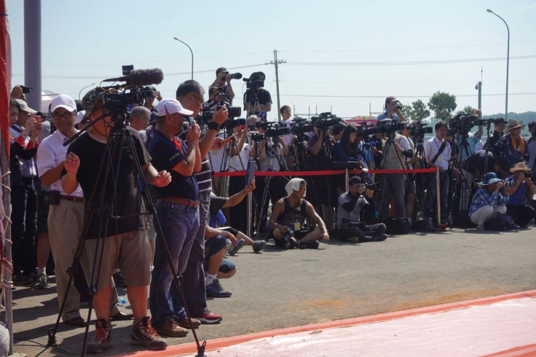 现场有近40家媒体参与报道摄影:汪灵犀 当天上午10时02分,金门田埔水库受水池入口的水管喷涌出来自大陆的源头活水,现场民众放飞气球,每个人的眼中都满是对未来的期待。