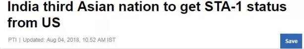报道称,印度是被美国划定为享有STA-1地位的第37个国家。
