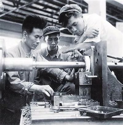 ▲20世纪50年代,张探厂车间工人操作机械设备。