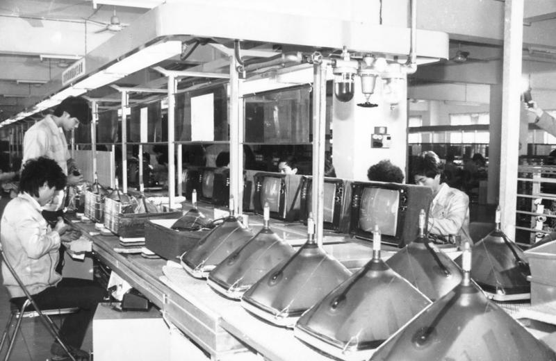 1984年,深圳布吉镇压宝声电视机厂,显像管生产线。(摄影:潘其华/FOTOE)