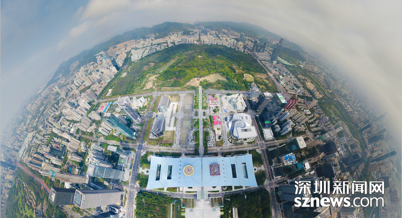 图为720°视野看深圳福田中心区。科技的进步,让我们能从另一个视角去看深圳。