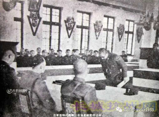 2015年7月24日,我乘坐火车到达山东省济南,去寻访抗战胜利山东战区受降旧址——山东省图书馆大明湖分馆“奎虚书藏”楼。进行抗战胜利万里行纪念活动。 中午时分,我走出人声喧嚣的济南火车站,穿过广场,乘坐11路公交车到达大明湖公园,山东省图书馆大明湖分馆“奎虚书藏”楼就坐落在这里。 今天的济南很炎热,大明湖中的荷花羞羞地低下了头,一些市民正在公园中纳凉。 坐落在济南大明湖畔的 “奎虚书藏”楼:山东战区受降旧址 ![]() 向公园工作人员打听之后,我朝大明湖南岸走去。穿过“遐园”,只见一座名为“奎虚书藏”的红色建筑静静矗立着。我信步走了进去,楼里静悄悄的,只见一些家长带着孩子正在大阅览室看书。但如今的安静并不能掩盖住当年这里的不平静,1945年12月27日,侵华日军山东战区签降仪式在这里举行。我看到“奎虚书藏”楼墙上的铭牌上醒目地写着:中国人民抗日战争胜利山东战区受降旧址。这里见证了山东人民的抗战历史,见证了中国人民抗战胜利的荣耀时刻。 “奎虚书藏”楼,现在是山东省图书馆大明湖分馆所在地,一楼的“读书堂”就是当年举行侵华日军受降仪式的地点。该楼由当时的山东省图书馆馆长王献唐主持修建,并成为省图书馆藏书楼。 1945年,该楼成为中国战区第十一战区副司令长官司令部大礼堂。当年12月27日,济南、青岛、德州地区受降典礼在这个大礼堂隆重举行,奎虚书藏见证了这一庄严时刻。 ![]() 1945年8月15日,日本正式宣布无条件投降。9月2日,日本代表在东京湾美国“密苏里”号战列舰签署投降书,9月3日成为中国人民抗日战争胜利纪念日。山东战区的受降之所以延迟到12月27日,是因为这一天是济南沦陷8周年纪念,选择这一天,是为了更好地记住历史,一雪国耻。 济南、青岛、德州地区主持受降之中国将领,从左至右依次为:第十二军军长霍守义中将、山东挺进军副总司令杨业孔中将、第十一战区副司令长官李延年中将、第十一战区副长官部参谋长梁栋新少将、第九十六军军长廖运泽中将。 ![]() 日本投降后,国民政府军事委员会参谋总长兼中国陆军总司令何应钦根据蒋介石的指令,将中国战区(不包括东北)划分为16个受降区,山东地区由十一战区副长官李延年为受降主官,日军投降部队由日本四十三军司令官中康中将代表签降。省图书馆研究员孙晓明表示,“李延年来到山东,特意推迟到12月27日受降,就是想一雪八年沦陷的耻辱。” 日军签降代表寒川吉溢呈献受领证书。 ![]() 济南受降典礼 历史时刻 1945年12月27日上午10时,李延年代表何应钦总司令接受日军投降。作为举行受降典礼仪式的中国战区第十一战区副司令长官司令部大礼堂被布置得肃穆壮观。礼堂门前悬挂红底金字匾额,上书“正义重申”四个大字。礼堂内四周悬挂着青红白三色布幕,礼堂正面高悬孙中山遗像,像前交叉着中国国民党党旗和中华民国国旗,左右分悬“永奠和平”四个大金字。左壁悬挂蒋介石和斯大林像,右壁悬挂杜鲁门和邱吉尔像。礼堂正中为受降主官席,左为武官观礼席,右为文官观礼席,受降官对面为签降代表席,左右观礼席之两边,均为新闻记者席,整个礼堂内的布置简单朴投素,庄严肃穆。 10时整,受降典礼隆重开始,参加观礼的军政首长按次入座,武官一律着军常服佩勋章,文官一律着黑色中山服。 李延年身着军服,胸佩勋章,率领副总司令杨业孔、参谋长梁栋新、军长霍守义、军长廖运泽,步入礼堂。全体官员均起立致敬。李延年等还礼入席,各官员均就位,即由引导官少校参谋张通引导日军签降代表细川中康、渡边洋、寒川吉溢、神保信彦、铃木一朗五人入场,入场后首先将军帽脱下,挂于礼堂门旁,继而入席,并肩站立,向李延年及各受降官敬礼,然后入座。旋即签字仪式开始。 签字命令书共四份,两份为正本,两份为副本。李延年先在命令书上签字。签毕即由参谋长梁栋新将签字命令书正副四本交给日军代表细川中康,并说:“此为副司令长官交予贵官之第一号命令,希贵官贯彻了解,彻底奉行,并以最迅速之方法,转达所属部队,一体奉行。” 细川中康等起立将签字命令书接过,梁栋新遂即回席。细川中康将命令书捧读一遍,即在上面签字并加盖官章。之后,留副本两份,将正本两份分由寒川参谋长送还受降主官。寒川至受降主官李延年前,行一鞠躬礼,双手将命令书递上,即回原位。 李延年检阅签字和官章后,向签降代表发问说:“对命令是否完全了解?” 签降代表全体起立,由细川中康答道:“完全了解,并绝对服从。”之后,签降代表摘下佩刀,齐赴受降主官席前行礼,将佩刀献上。然后退两步,再行鞠躬礼。此即代表山东省全体日军交械投降。 接着,引导官张通复引导签降代表五人退席,受降典礼结束。 受降典礼结束后,第十一战区副司令长官李延年中将在会场中作胜利演说。 ![]() 随后,李延年领导全体观礼官员鼓掌庆祝胜利,并作胜利后之演说。略谓“本日为日本八年前日军攻陷济南之日,今日举行受降典礼,其意义至为重大。今日之胜利实由抗战将士之奋斗及盟邦之协力,始获得最后之胜利,今后复原工作以及建国大业均待推进。仍希望与会各同志,本诸抗战之精神,继续努力……” 仪式后,李延年当即写下了“我武维扬”四个大字,即“抗日战争取得最终胜利,中华民族扬眉吐气”之意,四字匾额至今仍保存在省图书馆