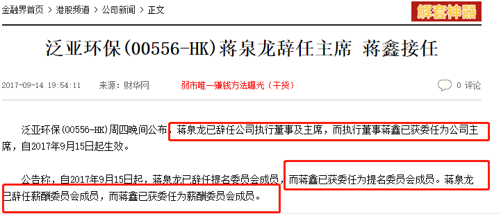 网上搜素发现流传一篇2017年的旧文,描述了蒋泉龙的一些经历:1952年出生,1972年左右开始在宜兴当地一家耐火材料厂任职。至1982年,蒋已经在耐火方面积累相当经验。1984年,蒋带着积累“第一桶金”--3000元人民币资本金--杀回宜兴,创办了戴红帽子的集体企业“宜兴镁质耐火材料厂”。 蒋泉龙在1987年转入稀土行业,成立新威分离厂;1988年又成立宜兴稀土冶炼厂。 进入了90年代以后,蒋泉龙的事业越做越大,他又先后成立了几家公司。1994年,新威集团公司成立,此时蒋泉龙据说身家达到1.3亿。1999年,蒋泉龙的宜兴新威(后更名“中国稀土”)在香港主板上市,蒋泉龙也开启了中国内地民营公司赴港上市的开端。 利用在香港的融资,他在国内购买了许多稀土矿产。之后国际稀土价格大涨,蒋泉龙的公司市值一路上涨,在2001年的时候他已经身家达到了11.4亿元,排名全中国的39位。 之后几年蒋泉龙的中国稀土发展都不错,2004年到2007年连续4年,公司的利润都超过了1亿,2007年甚至达到了2.99亿元。
