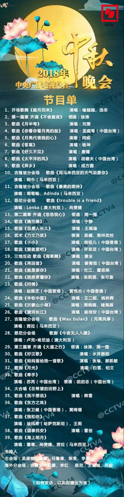 2018年中央广播电视总台 中秋晚会 你最期待哪个明星? 你最想看哪个节目? 关于你想知道的 现在全部告诉你答案! ~节目单来啦~
