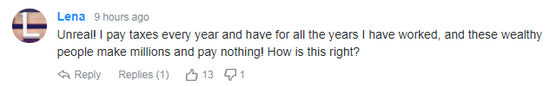 截至目前,白宫方面和库什纳的公司并未对此发表任何评论,但美国网友却坐不住了,不少人的发言中更是难掩愤怒之情。网友莉娜难以置信的表示:“这不是真的!我工作了那么多年,每年都交税,而这些有钱人赚了几百万却什么都不交!这是怎么回事?”弗兰克则称:“哈,越有钱的人缴纳的税越少,这绝对有问题。”