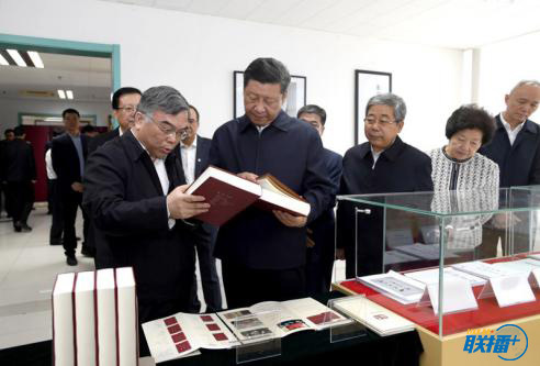 2018年5月2日,习近平在北京大学国际马克思主义文献中心察看馆藏马克思主义典籍。图片来源:新华社