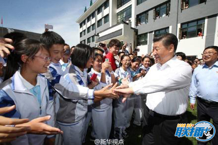 2016年9月9日,习近平离开北京市八一学校时与教师和学生依依惜别。图片来源:新华社