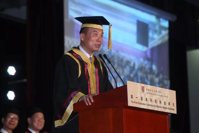 Professor Yangsheng Xu delivers a speech at The First Graduation Ceremony for Bachelor Degree Graduates My dear colleagues, I also want to say thank you to you. Thank you for devoting yourselves to our students, to the growth of the University, and to the reform of tertiary education. We are gathered here for the same pursuit and belief in education and in life. I would like to extend my sincere gratitude to Shenzhen and Hong Kong governments for your staunch support to our university. Thank you for making it possible for a world-class research university to be established and gradually become the cradle of talents for the Pearl River Delta and for the Guangdong-Hong Kong-Macau Greater Bay Area. I would also like to express my heartfelt appreciation to teachers, students, and alumni of The Chinese University of Hong Kong. CUHK-Shenzhen inherits the traditions of CUHK, including its high teaching quality, the collegiate system, and the humanistic educational atmosphere. We are very much glad to see that CUHK has spread its influence such efficiently and effectively in Shenzhen. My dear students, you will be leaving this university tomorrow. I have kept thinking what the best gifts are that I can give you. I opened a WeChat public account and have been sharing my personal experiences and thoughts with you in the form of prose there. As the proses accumulate, I decided to combine them into a book and use the title of a representative prose Gifts from my teacher as the name of the book. Today, I give the book to you as the first gift. The other gift I would like to give you is a sentence: Never stay in your comfort zone in your youth. Many students came to discuss with me where to live, whether to pursue further studies, their career paths, etc., and a life that is stable, highly paid and sheltered by parents seems to be so appealing to them. My dear students, you are young, and it would be dangerous for you to stay in your comfort zone when you should work hard. Good economic conditions should never be the obstacles that restrain you from pursuing spiritual excellence. You must step out of your comfort zone bravely to activate your potential. My dear students, the success you have achieved so far is the result of your hard work. If you cease learning and working hard, how could you survive and succeed in this fast-changing world? You should learn to take good care of yourself as a mature individual as nobody would wish to accompany you if you decide not to move forward, and nobody would sympathize with you if you choose to be weak. You must see the value of yourself and be confident in yourself. As long as you try your very best to chase your dream and to pursue to be extraordinary spiritually, there will be nowhere that you cannot reach. My dear students, please come back to visit the University from time to time in the future. It will always be the harbour of your soul wherever you go and however exhausted you are. Always remember, here in CUHK-Shenzhen in Longgang there will always be a light for you. My dear students, I wish every one of you all the best. CUHK-Shenzhen