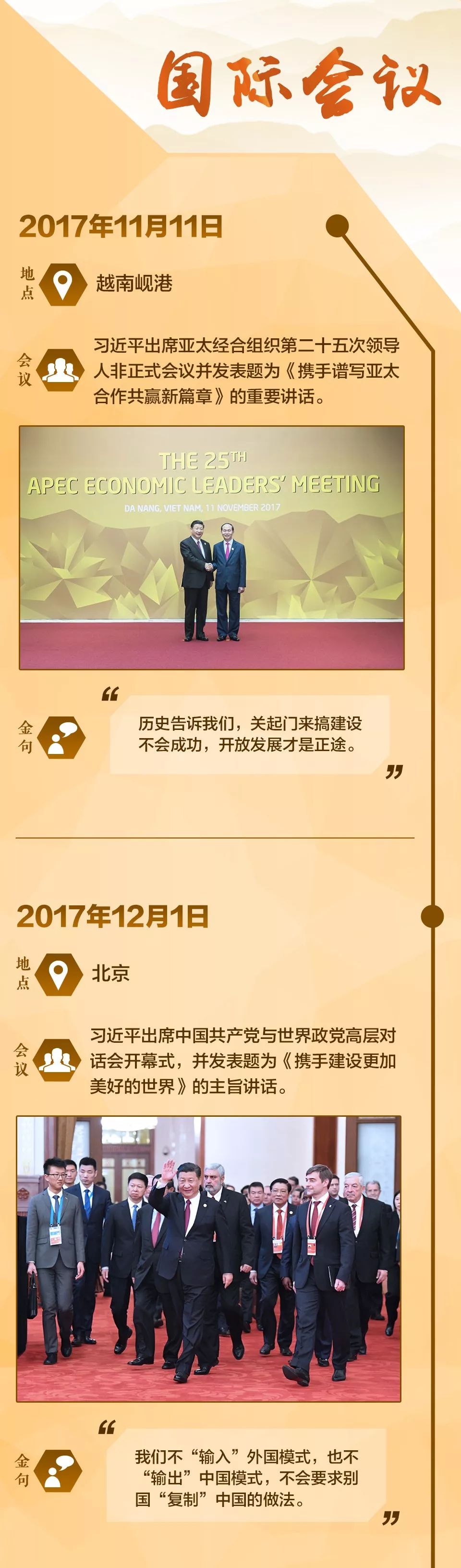 2017年10月18日,党的十九大在北京召开。如今,一年已经过去,而在这一年间,从国内考察、参加国际会议再到外事访问,习近平总书记的足迹遍布多地。今天,跟随一张图,一起回顾习近平总书记这一年来的足迹。