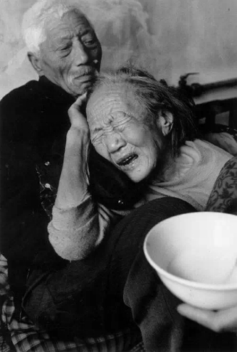 ![]() (作者焦波,人民日报海外版 摄影记者,现任国务院新闻办公室图片库艺术总监,南开大学兼职教授。1974年起开始用照相机为爹娘拍照片。) 1998年12月,在中国美术馆为爹娘举办“俺爹俺娘”摄影展,焦波的爹娘为影展剪彩,被媒体誉为“感动京城,轰动全国,是近年来唯一让人落泪的影展”。 他的组照《俺爹俺娘》荣获首届国际民俗摄影比赛最高奖——“人类贡献奖”大奖 。 ![]() 娘,一个身高1.41米,体重71斤的弱小女人……她属牛。 爹,长着一双倔强眼睛的健壮男人……他属兔。 ![]() 这是我给爹娘拍的第一张合影,那时的爹娘一脸严肃。 在家乡这条小路上,爹娘共同走了七十多年。爹娘出生在同一个村,一个村东,一个村西,结婚前谁也不认识谁。 “往上点,再往上点儿,你听见了吗?” 真是“越老越小孩”,看,爹娘笑得多可爱。 每到过年,娘总是坐在家门口的石头上,盼望儿回家。 ![]() 每次我离家时,总不让娘送,娘也答应不送,但往往到了村头,猛一回头,娘就跟在身后…… ![]() 按照鲁中山区农民的习俗,爹娘一辈子通腿而眠。 爹干活手指上扎了刺,娘戴上老花镜给他挑。扎痛了,爹就嚷嚷:“你这哪里是挑刺,简直是挖坑、刨树根!”娘还是细声慢语:“老了,眼花了,看不清了。” 娘六岁缠脚,指甲长成了蜗牛的样子,爹常为他修剪。 ![]() 7月4日是爹娘结婚68周年纪念日,娘给爹擦洗了全身,又给他剪脚趾甲。两个老人要干干净净地度过这一天。 男在前,女在后,爹在任何时候都是唱“主角”。 每天窗户一亮,爹娘便起床干活,忙忙活活就是一天。 对爹的“旨意”,娘言听计从,尽管有时不情愿。 娘生爹的气,病倒了,在打吊瓶的那几日,爹又烧水,又做饭,格外勤快。 要过春节了,娘的肺气肿病突然发了,住进医院进行抢救,爹一个人在家孤孤单单,整天打不起精神来。 娘生病了,爹也成了半个赤脚医生。 娘病重了。家里人筹划用旧婚俗的过门仪式来为娘冲病消灾。爹身缠花床单,拉着红绸布,在婶子们的簇拥下一步跨过了放在门槛上的马鞍。他喜滋地对娘说:“门槛我迈过去了,马鞍我跨过去了,你的病很快就会好了。 爹假说试试娘发不发烧,其实...在娘病危的时候,爹用这种最前卫的方式表达了对娘的爱! 正月十五娘病重,肺气肿、房颤、肺脑以及带状疱疹折磨得她失去了理智。爹执意要把她接回家:“我伺候她几天,即使她走了我心里也好受。” ![]() 正月十八,娘病危,医生说娘再有2个小时就要走了,家里人赶忙给她穿上寿衣、搭好灵床,邻居也赶来为她送行。第二天,娘又慢慢醒过来了。 娘的病稍有好转,爹迫不及待到医院探望,一进门就直抹眼泪。“咱俩结婚68年,这可是头一回不在一块儿过年啊!”爹边哭边说。 清明(4月5日)过后,春暖花开的时候,娘的病慢慢好转。五月初,竟神奇般地站了起来,出院回到了家。 爹喜欢这张照片。人在病重时,全家人都悲戚戚的,病好了,看看这张照片又让人乐,这叫“悲喜相生” 。 ![]() 病好了,他们还是闲不住,又下地干活了。爹常说,你娘的小脚走不快。可每次走着走着,爹又落在娘的身后。 在田里剜谷苗的老娘,像立在天地之间的一尊雕像。 手握锄头的老爹,像一座铁塔。 天怪热的,爹娘关上大门在院子里搓澡。娘给爹搓完脊梁,爹又给娘搓。 娘说:“你爹给俺搓背是近些年的事,年轻时他才不干呢!” 爹摔断了股骨,但还是那倔脾气,吃饭还是不让人喂。 剜点野菜给孩子们换换口味。她说:“早年缺粮食用野菜填肚子,现今吃野菜是尝新鲜了 。” “娘,还下地吗?”“去!人活着不干活干啥!”这一年,娘已84岁了。 秋天,把成熟的葫芦摘下来,中间锯开成为两半,再放到锅里煮一煮,葫芦瓤是一道极好的菜,而葫芦瓢用作盛水的勺,又经济,又比买的铁勺好使。 家里刚安上电话,爹娘就想打一个试试。爹拨号码,娘拿耳机听。“咋没声呢?”娘直埋怨爹不会拨号码。 爹娘整理一下相框里的子孙们的照片,也算过个“团圆”年吧! 爹是书迷,一有空就看书看报,看到新鲜事,就出去讲给老伙计们听。报刊上每当发表我的作品,爹总是看了一遍又一遍,看完后,再讲给娘听。 爷一辈子没上过泰山,爹抱着爷爷的画像爬上泰山极顶。 娘说:“小心点,你小心点嘛。”一生扶持,还是老夫老妻。 一起生活了几十年,隔着廊柱歇息,动作、神情都快一致了! 爹娘爬上了泰山极顶,碰上了一对青春恋人…… 不到长城非好汉,咱登上长城,也成好汉啦!”爹对娘说。 一对来自加拿大的夫妇看到爹娘双双携手登上长城,羡慕不已。 爹娘说,坐在地铁里啥都好,就是弄不清东南西北。 娘85岁大寿,我和姐姐们又给她买了一个大号带“寿”字的生日蛋糕,还插上了花花绿绿的生日蜡烛。 孙男弟女们围在一起,拍着巴掌唱了一遍外国歌曲《生日快乐》,然后让娘吹灭蜡烛。娘把嘴凑到蜡烛前,吹了几次都吹不灭,还是大伙围上去才吹灭了。 娘又念叨来:“唉,俺这张嘴火能吹着,灯能吹灭,今天咋就吹不灭这几根蜡烛呢?老了,没牙了,嘴漏风!” 这是全家第一张合影。爹娘生了8个儿女,死了4个,剩下我和傻子大哥,还有两个姐姐。大哥始终是爹娘最牵挂的。 田里劳动的娘和照相的我 。 爹深情地拉着娘的手,念了一句戏词:“咱手把手儿把话拉……” 爹娘结婚70周年这一天,到北京游览,这是他们第一次坐飞机。娘有些紧张,紧握着爹的手不放。 ![]() 娘说:“俺这么大岁数了,咋还能穿这样艳红