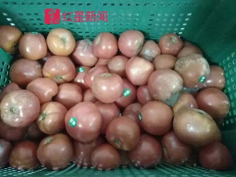▲坏掉的番茄。 视频中,有家长质问,为什么会把发霉的番茄放在那里,食堂一名工作人员称,“他们送错地方了,直到现在还没来取……” 家长们略显激动,打断了这位工作人员的发言。 19日下午,经家长们调查,油、米、调料等未发现明显问题。但标示盛放猪皮、干贝等食材的容器外壳上却存在明显虚假标识的问题,这些产品标识的生产及加工时间竟然是10月20日。