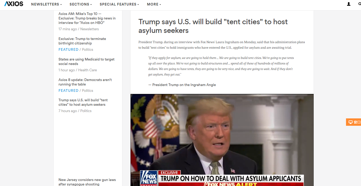 特朗普拟终结“生在美国就是美国人”政策 10月30日,美国总统特朗普在接受美国新媒体公司Axios独家专访时表示,他计划签署一项行政命令,取消非美国公民的婴儿公民权以及在美国本土出生的非法移民的公民权。