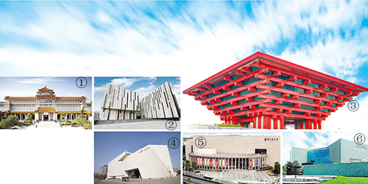 ①中国美术馆 ②江苏省美术馆新馆 ③中华艺术宫 ④山东美术馆新馆 ⑤湖北美术馆 ⑥广东美术馆 设计:蔡华伟