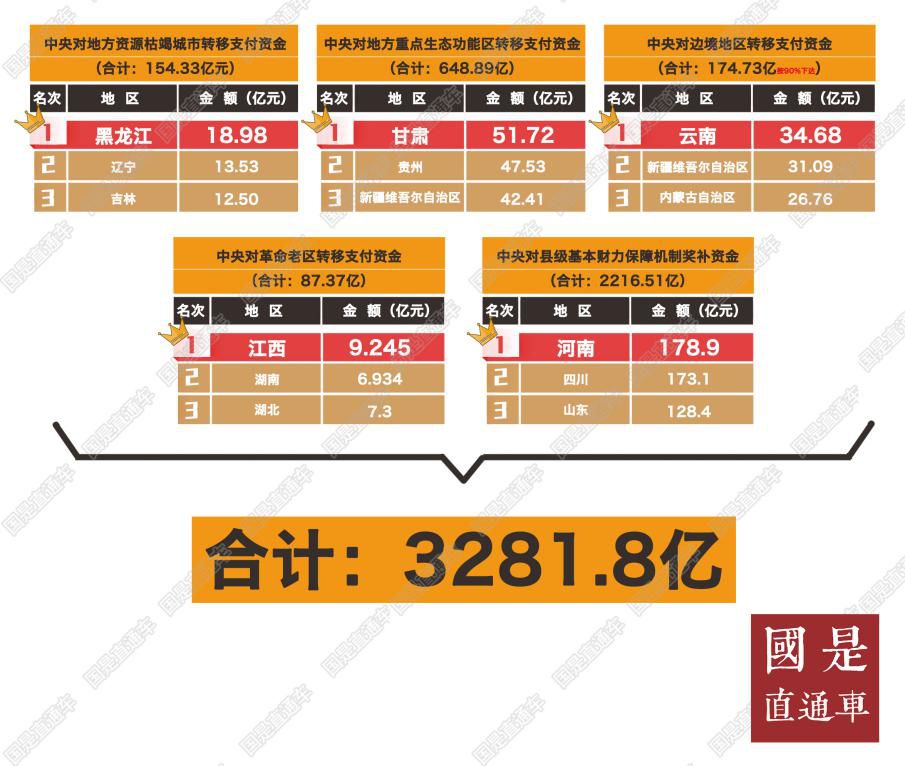 国是直通车侯雨彤制图 财爸本轮下发的红包中,除了均衡性转移支付资金,还有5类资金,分别是:中央对地方资源枯竭城市转移支付资金、中央对地方重点生态功能区转移支付资金、中央对边境地区转移支付资金、中央对革命老区转移支付资金、中央对县级基本财力保障机制奖补资金。 “这是针对各地区的不同发展要求,对一些重点领域,重点方面的支出,是对现实实际考量的结果。”刘剑文说。 可见,财爸不仅不是偏心,还为各地区的发展操碎了心。 中央出手,保障社会民生 为什么要提前发放?中央财经大学财税学院教授温来成在接受中新社国是直通车采访时表示,这样便于地方财政在下个年度之前,提前安排地方发展的相关事项。“中央下发的各项资金基本符合明年各地情况发展预期,在下个年度开始之前提前下发,也就成了惯例。”