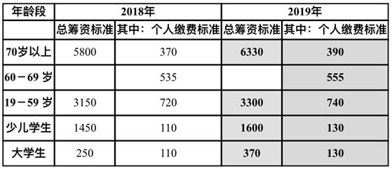 图片说明:2019年居民医保筹资标准和个人缴费标准表(单位:元/人) 二:为进一步方便居民看病就医,完善转诊办法,适当延长转诊时间,从目前的3个月延长到6个月。 三:继续对困难人群参保进行帮扶补助,对城乡居民中的低保对象和低收入老人、重残人员以及高龄老人等,政府相关部门继续对他们的个人缴费部分给予减免。 在开展2019年度城乡居民医保登记参保受理工作之际,上海市医保部门希望符合条件的居民在规定期限内及时办理登记参保手续,逾期参保将设置3个月等待期,等待期满后方可享受城乡居民医保待遇。 附:2019年度本市城乡居民医保相关政策问答 1、问:2019年城乡居民医保筹资标准如何调整? 答:为了保证城乡居民医保制度可持续发展,2019年政府财政继续对城乡居民医保加大投入力度,提高了居民医保总筹资标准。具体为: 60周岁以上人员,筹资标准从每人每年5800元调整为6330元; 19-59岁人员,筹资标准从每人每年3150元调整为3300元; 中小学生和婴幼儿,筹资标准从每人每年1450元调整为1600元。本市各类高等院校、科研院所中接受普通高等学历教育的全日制本科学生、高职高专学生以及非在职研究生(以下简称“大学生”),筹资标准从每人每年250元调整为370元。 2、问:2019年城乡居民医保的个人缴费标准如何调整? 答:2019年,充分考虑居民的承受能力,适度调整个人缴费标准。具体为: 70周岁以上人员,个人缴费从每人每年370元调整为390元; 60-69岁人员,个人缴费从每人每年535元调整为555元; 19-59岁人员,个人缴费从每人每年720元调整为740元; 中小学生和婴幼儿、以及大学生,个人缴费从每人每年110元调整为130元。 3、问:2019年度本市困难人群参加城乡居民医保的补助政策有何变化? 答:2019年,上海继续对困难人群参加城乡居民医保实行帮扶补助。政府对城乡低保家庭成员和低收入老人、重残人员、以及高龄老人等的个人缴费部分继续予以补助。 4、问:2019年度本市城乡居民医保就医管理有何变化? 答: 2019年继续坚持社区首诊、按需转诊,推动形成有序的分级诊疗制度。同时,为进一步方便居民看病就医,完善转诊办法,转诊时间从目前的3个月延长到6个月。 5、问:2019年度本市城乡居民医保的登记缴费期如何设置?