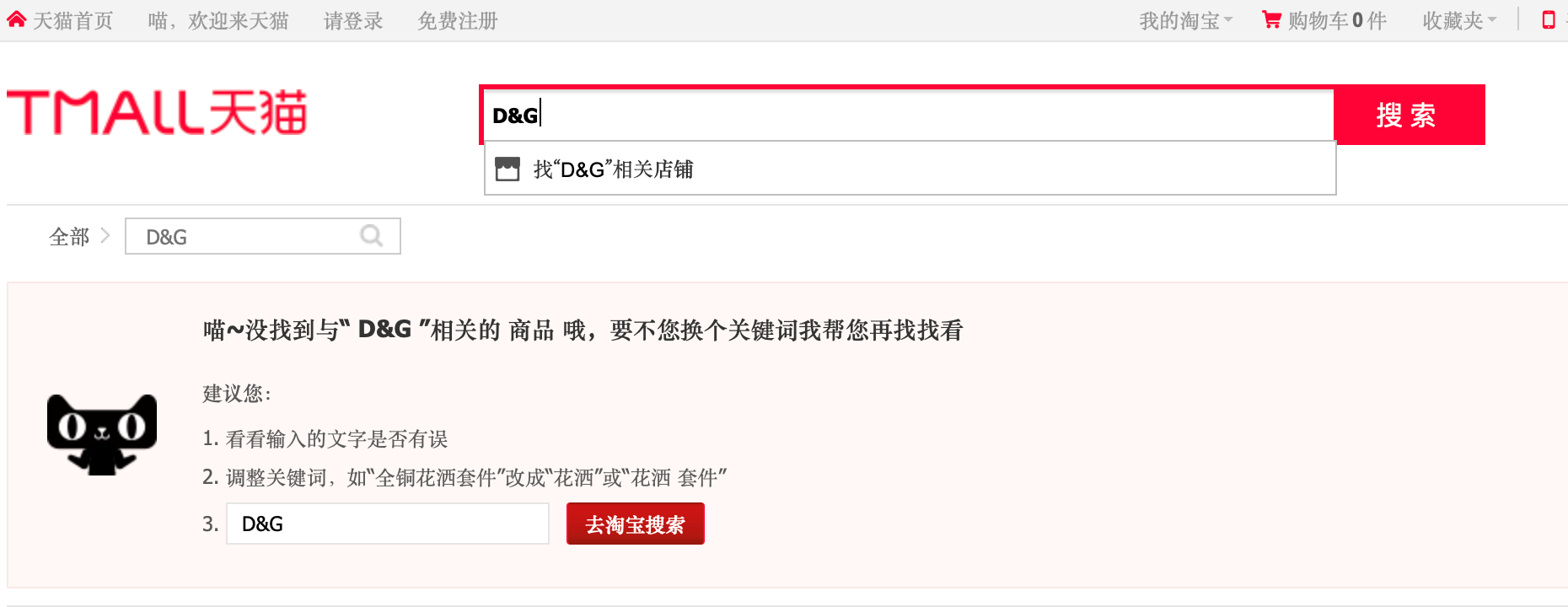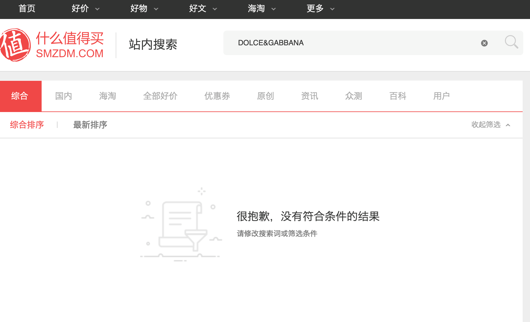 除了直接销售产品的电商平台,甚至电商导购平台也开始“封杀”D&G,在“什么值得买”网站上,记者搜索相关关键词,网页显示无相关内容。