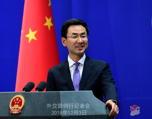 12月3日,外交部发言人耿爽主持例行记者会。有记者就刚刚举行的中美元首会晤进行一系列提问: 问:我们注意到,刚刚举行的中美元首会晤就经贸问题达成共识,中方发布的消息稿与美方发布的声明有些差别。中方对此有何回应? 答:12月1日,习近平主席同特朗普总统在G20阿根廷峰会期间成功举行会晤,达成重要共识,为今后一个时期的中美关系指明了方向。中方已经发布了消息稿,建议你仔细阅读。 两国元首在会晤中就经贸问题达成共识,同意停止加征新的关税,双方还就如何解决存在的分歧和问题提出了一系列建设性方案。中方愿意根据中国新一轮改革开放的进程以及国内市场和人民的需要,开放市场,扩大进口,推动缓解中美经贸领域相关问题。中方同时指出,双方达成互利双赢的具体协议是中方对美方采取相关积极行动的基础和前提。 我还要强调的是,此次会晤双方达成的共识意义重大,不仅有效阻止了中美经贸摩擦的进一步扩大,而且为双方合作共赢开辟了新的前景;不仅有利于中美两国各自的发展和人民的福祉,而且有利于世界经济的稳定增长,符合各国利益。