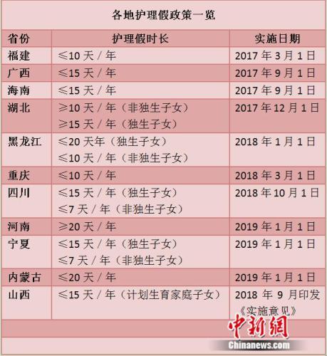 各地护理假政策一览中新网张尼制图