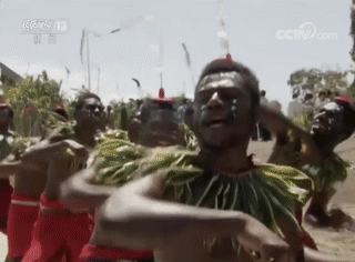 △俄媒报道截图 在巴新,巴新总督达达埃在议会大厦前广场为习近平举行隆重欢迎仪式。身着传统服饰的巴新民众簇拥在街道两旁,跳起欢快的舞蹈,敲响喜庆的鼓点,热烈欢迎习近平的到来。
