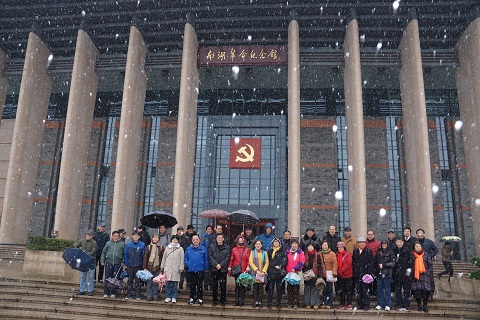 ![]() (红船) 8号上午,全体成员前往嘉兴,瞻仰了南湖红船 ,并参观了南湖革命纪念馆,接受革命传统教育。曾是黑龙江知青并曾任嘉兴市公安局干部的嘉兴知青联谊会会长张秋荣专程前往陪同,进行了他富于情感的特色讲解。 ![]()