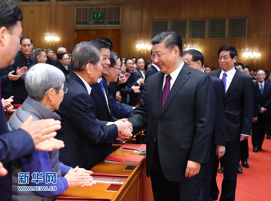 12月14日,庆祝改革开放40周年文艺晚会《我们的四十年》在北京人民大会堂举行。习近平、李克强、栗战书、汪洋、王沪宁、韩正、王岐山等党和国家领导人,与3000多名观众一起观看演出。 新华社记者谢环驰摄 原标题:庆祝改革开放40周年文艺晚会《我们的四十年》在京举行 习近平李克强栗战书汪洋王沪宁韩正王岐山出席观看 新华社北京12月14日电(记者吴晶、林晖)伟大变革,书写壮丽史诗;永志不忘,奋进复兴征程。庆祝改革开放40周年文艺晚会《我们的四十年》14日晚在京举行。习近平、李克强、栗战书、汪洋、王沪宁、韩正、王岐山等党和国家领导人,与3000多名观众一起观看演出,共同回顾改革开放40年举世瞩目的历史成就。 人民大会堂万人大礼堂灯光璀璨,二楼眺台悬挂着横幅:紧密团结在以习近平同志为核心的党中央周围,高举中国特色社会主义伟大旗帜,以邓小平理论、“三个代表”重要思想、科学发展观、习近平新时代中国特色社会主义思想为指导,不断把新时代改革开放继续推向前进!舞台中央,“1978”“1979”……40年年份数字的陈列,铺展出闪光的奋斗足迹。舞台两侧,在18名仪仗兵的护卫下,金色的麦浪托起时代的丰碑,鲜红的五角星闪耀天空。 19时55分,在欢快的乐曲声中,习近平等领导同志步入大礼堂,与改革开放杰出贡献受表彰人员代表亲切握手,向他们致以崇高敬意,全场响起热烈掌声。 “古老的土地因春风唤醒,美丽的河流因解冻新生。奔腾吧,五千年踏浪前行的我们,为民族的复兴踏上崭新的征程……”金色的党徽辉映在舞台中央,合唱《我们的道路》拉开整场晚会序幕。 晚会分为序曲、上下篇和尾声。上篇《壮阔东方潮》以音乐短剧的形式,再现了改革开放以来中国翻天覆地的变化。《年轻的朋友来相会》《我们的生活充满阳光》《金梭和银梭》《好人一生平安》等歌曲,重温改革春风拂过神州大地的群情振奋。《我不想说》《站台》《外面的世界》《春天的故事》等情景演唱和舞蹈,讴歌广大建设者在经济特区热土上的勤劳奉献。《在希望的田野上》《我爱你塞北的雪》《信天游》……一首首经典的歌曲,展开农村改革的蓬勃画卷;《我的中国心》《走进新时代》《北京欢迎你》《江山》……一段段精湛的表演,再现富民强国的光辉足迹。情景诗朗诵《伟大的觉醒》将晚会上篇推向高潮,抒发了全国各族人民对改革开放“深深的感激与永恒的敬意”。