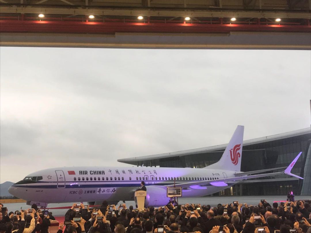 摄:郭媛丹 波音首次在中国向中国客户交付737MAX飞机,也是波音在美国境外建立的首个生产项目。 在2018年起起伏伏的中美经贸关系中,按照预期计划,波音舟山737完工和交付中心项目15日在舟山向中国国航交付首架737MAX飞机,这是波音首次在海外实现飞机交付。 11月19日,一架波音737MAX飞机从西雅图飞抵舟山普陀机场,此后的20余天时间里这架飞机在该中心厂房进行最后的内饰施工。此次交付也标志着波音舟山737完工和交付中心项目正式投入运营。当天波音民用飞机集团总裁兼首席执行官凯文·迈卡利斯特在致辞中表示,这是波音和中国长达40年合作的最新篇章。 舟山波音737完工和交付中心项目于2015年在中国国家主席习近平访问美国之际宣布。2016年,10月浙江省、波音、中国商飞宣布该项目落户浙江舟山,由波音公司与中国商飞共同设立。2017年5月该项目破土动工。