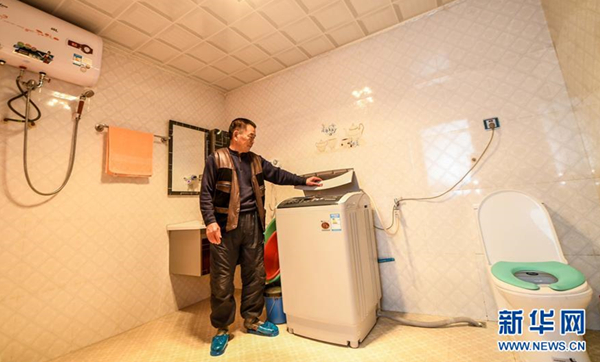 空中俯瞰浙江省舟山市定海区新建社区(2017年9月21日拍摄)。(新华社记者徐昱摄) 随着“绿水青山就是金山银山”理念的践行,越来越多的蓝天、越来越绿的大地、越来越清的水域……陆续展现在我们面前,大美中国成了生态文明建设最生动的佐证,良好的生态环境释放出最普惠的民生。而中国经济,也随着结构转型升级,与资源环境更加协调,呈现出更加健康、更有活力的气质。 告别“土厕所”,迎来卫生间 厕所革命:补齐影响群众生活品质的短板 宽敞的空间、洁净的瓷砖、崭新的坐便……吉林省延边州光东村村民全得成家用上了和城里一样的卫生间,这让他直感慨,“生活方便了、文明了,都是共产党给咱们造福,心里暖和啊。”