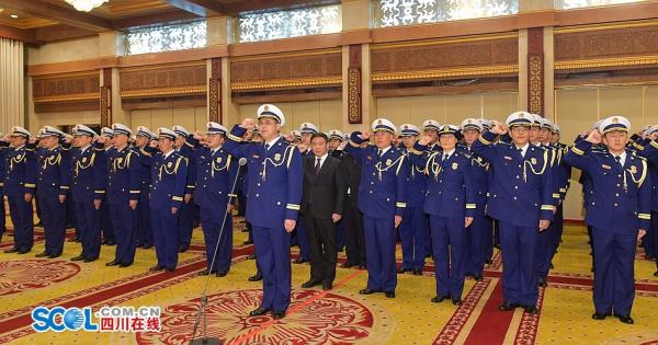 12月26日15时30分,在雄壮的国歌声中,全省综合性消防救援队伍换装宣誓仪式在成都举行。告别军绿色,换上火焰蓝。 “中国消防”微信公众号12月26日下午发布消息:今天起,国家综合性消防救援队伍统一换着新制服。你——这身叫做“火焰蓝”的制服,就带着使命和荣誉,走进了我的生命里。 另据中国网消息,12月26日15时30分,在雄壮的国歌声中,四川全省综合性消防救援队伍换装宣誓仪式在成都举行。四川省消防救援总队和森林消防总队227名指战员代表参加仪式。 事实上,消防救援队伍这套“火焰蓝”制服今年11月初已经公开亮相。 11月9日,国家综合性消防救援队伍授旗仪式在人民大会堂举行。中共中央总书记、国家主席、中央军委主席习近平向国家综合性消防救援队伍授旗并致训词。澎湃新闻记者注意到,参加仪式的国家综合性消防救援队伍领导层就已身穿这套新制服。 根据@新华视点公布的服装样式,这套制服总体沿用传统制式服装样式。春秋常服、冬常服在袖口增加袖饰带,总监为一粗二细、指挥长为一粗一细、指挥员为一粗、消防员为一细。 颜色方面,这套制服的春秋(冬)常服、作训服颜色选用深火焰蓝色,突出消防救援队伍的职业特性。夏常服上衣和内衬衣颜色,指挥长以上采用白色,其余的采用浅火焰蓝色。 根据此前公布的中共中央《深化党和国家机构改革方案》,公安消防部队、武警森林部队退出现役,成建制划归应急管理部,组建国家综合性消防救援队伍。