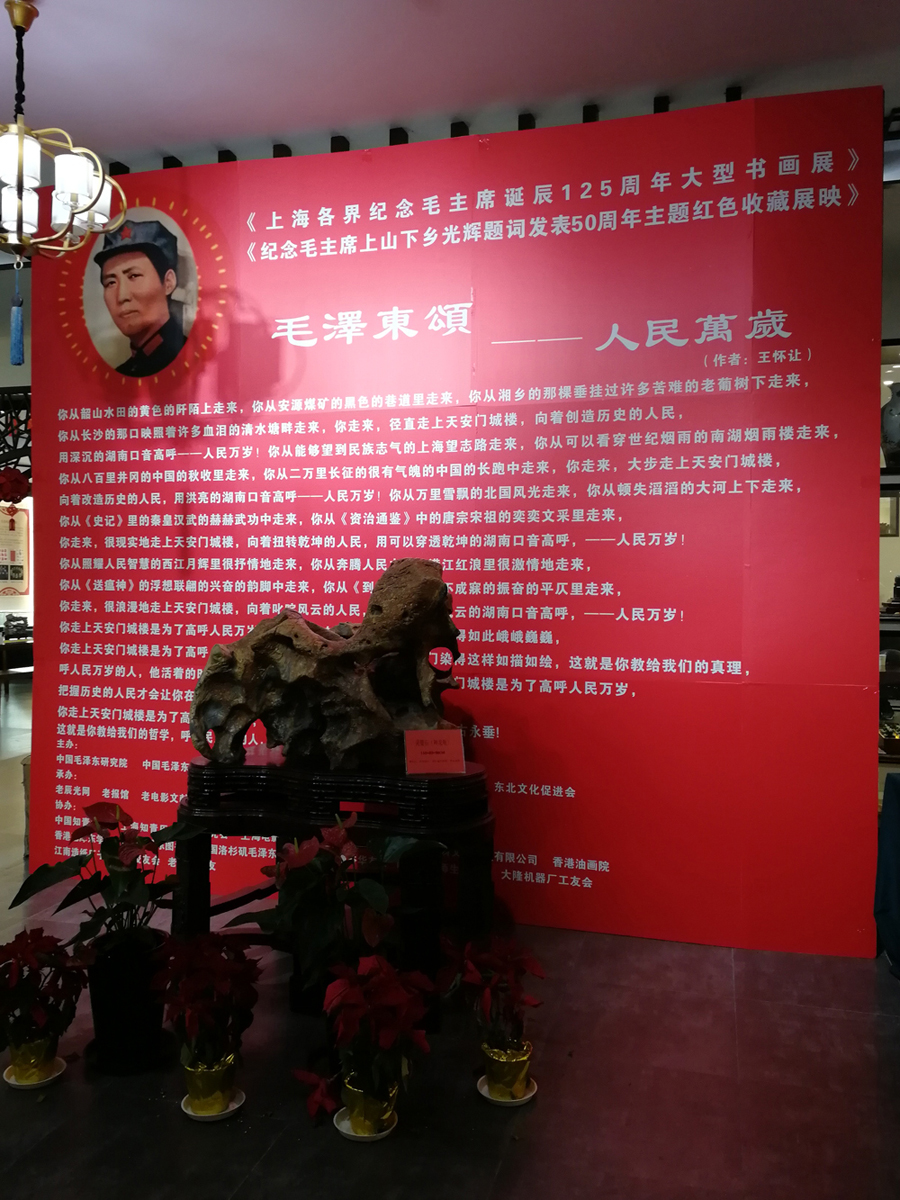 老辰光网讯(铁滨报道) 2018年12月26日下午,上海《东方收藏》艺术馆举行纪念毛主席诞辰125周年暨纪念毛主席关于知识青年上山下乡指示发表50周年的书画展、收藏展映活动开幕式。 参加开幕式活动的人员共一百多人。原东海舰队副政委、上海市委原副秘书长张涵贵中将、上海东北经济文化发展促进会常务副会长兼秘书长齐路通少将、抗美援朝老英雄张建群、著名全国老劳模杨怀远、老知青典型朱克家、中国知青联盟理事长王进江、《黑土情》杂志社主编翁德坤、上海农场知青网名誉董事长李凤吾、爱国华侨马来西亚中国知青文化交流有限公司董事长曲连遵和著名毛体书法第一人宋明政等出席了开幕式。南京军区原空军副司令员韩德彩中将上午参观了书画收藏展。参加活动的人员缅怀伟大领袖毛主席,以无比敬仰的心情,参观了展出的建国以来毛主席重要活动的照片和宣传画,以及毛体字书法等,并纷纷在毛主席塑像前拍照留影。 ![]() 纪念活动开幕式由承办单位之一上海老报馆馆长刘德保和老知青李玲华主持。刘德保说,今天是12月26日,是毛主席诞辰125周年,我们举行纪念活动,就是要不忘毛主席的丰功伟绩,学习运用好毛泽东思想。齐路通将军在发言中说,毛主席是中华民族的伟大领袖,是伟人奇人,是为人民造福的人,是我们心中的红太阳,毛泽东思想威力无穷,放之四海而皆准,我们的工作离不开毛泽东思想。五十年前,毛主席号召知识青年到农村去,接受贫下中农再教育。广大知青以积极的态度响应,为国家作出了贡献。知青下乡战天斗地起到了脊梁作用;返城后没有忘记第二故乡,依然关心那里的建设和发展,起到了桥梁作用;不少知青经过农村艰苦工作的锻炼,走上各级领导岗位,起到了大梁作用,担任了党和国家领导更是栋梁作用。知青们应由此感到自豪。王进江在发言中祝贺纪念活动的举行,她回顾了自己生在新中国,长在红旗下,从小受到党的传统教育和响应毛主席的号召上山下乡经受锻炼的经历,认为就是要听毛主席的话,高举毛泽东思想的伟大旗帜,不忘初心,牢记使命,为中华民族的伟大复兴、为实现中国梦作出知青一代应有的贡献。 开幕式上还进行了精彩的文艺演出,以歌舞、演唱等形式表演了《北大荒人的歌》、《唱支山歌给党听》、京剧《红灯记》选段、《草原上升起不落的红太阳》等歌颂毛主席歌颂党的节目。 开幕式在全体高唱《东方红》歌曲中结束。 这次展出的历史珍贵文物,主要来自知名红色收藏家刘德保和他的上海老报馆和上海老电影文献馆,他的馆内已收藏有建国以来《人民日报》、《解放日报》等老报纸50余万份和电影胶片4000多部,以及各个时期的宣传画及电影海报上万余张。他的红色收藏和举办的纪念展览活动受在社会的关注。 纪念活动由中国毛泽东研究院、中国毛泽东(毛体)书法协会、上海市收藏协会、东方收藏、百老讲师团、上海东北经济文化发展促进会主办。上海颐若文化传播有限公司和老辰光网董事长赵大砥向出席纪念活动的人员,赠送了精心设计制作的以红旗图案刻有马克思、列宁、毛泽东头像的纪念章,并派员参加了纪念活动。 纪念活动举办至12月27日。 ![]() ![]() ![]() ![]() ![]() 齐路通将军发言: ![]() 王进江理事长发言: ![]() ![]() ![]() ![]() ![]() ![]() ![]() (责任编辑:铁滨) |