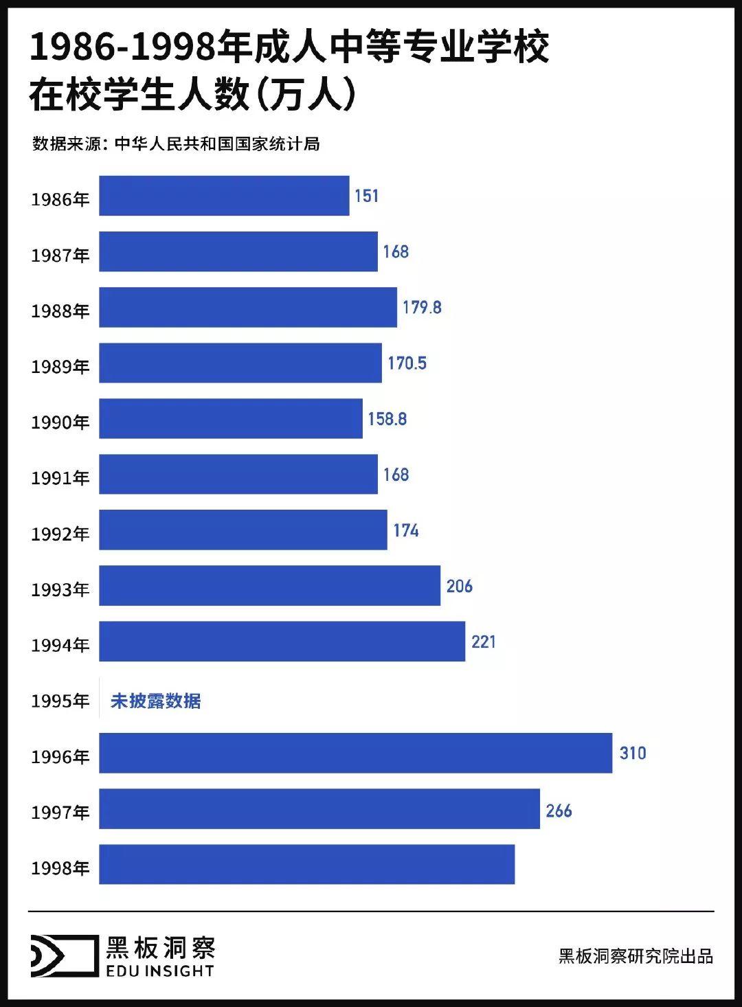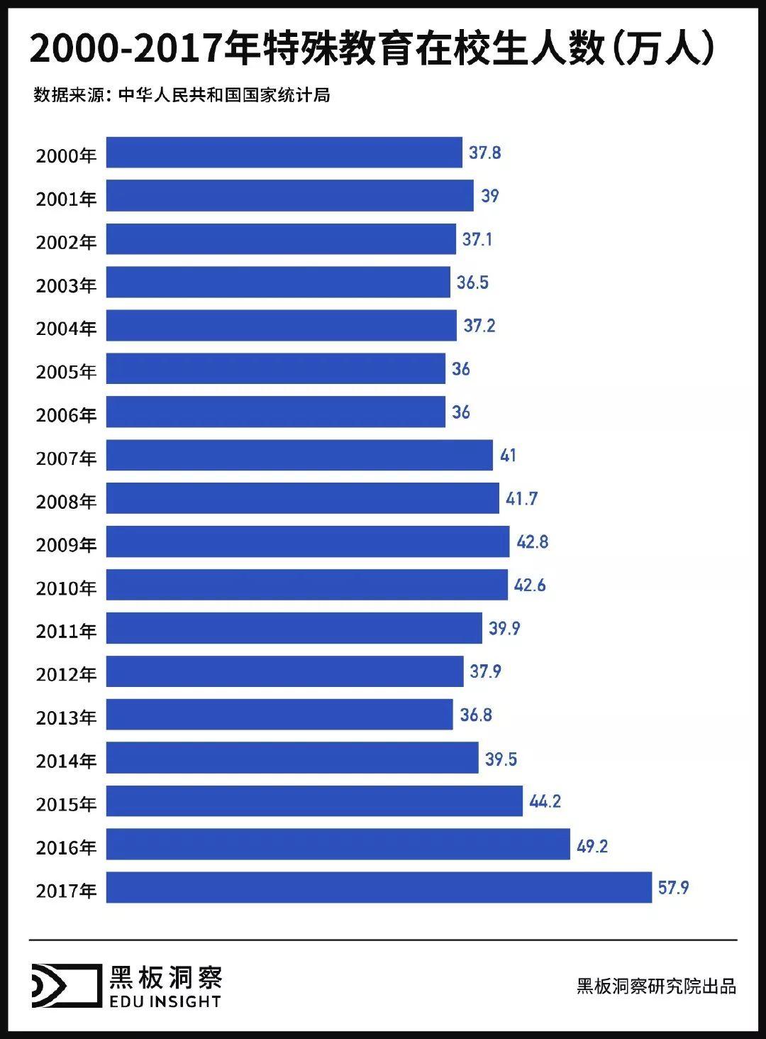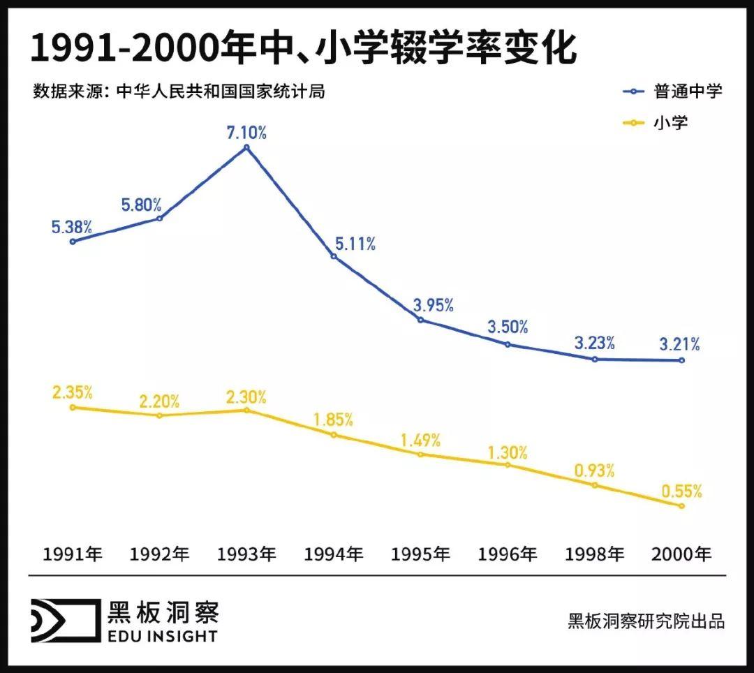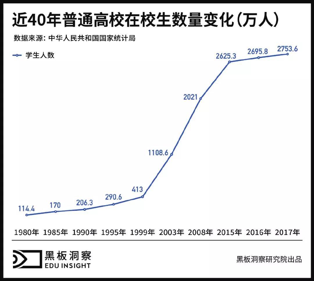 01 扫盲 教育工作停滞十年后,中国教育出现了一个断层,文盲数量随之增多。据1982年第三次全国人口普查数据显示:全国12岁以上文盲、半文盲2.3722亿人,占全国人口总数的23.5%,其中农村文盲占91%,40岁以上文盲2.1853亿人。随着工作重心转向经济发展和现代化建设,教育重新受到重视。1982年12月4日,扫盲被纳入《中华人民共和国宪法》,宪法第十九条规定:“国家发展各种教育设施,扫除文盲……”。 ![]() 也是在2000年的报告中提到,“基本普及九年义务教育和基本扫除青壮年文盲的目标初步实现”。因此往后的报告中,在以往教育部分最后出现的一句:“全国共扫除文盲XXX万人”,也就此消失。而作为一种庄严的承诺,“国家发展各种教育设施,扫除文盲……”依然书写在中华人民共和国的宪法第十九条中。 02 成人教育 扫盲取得的成效,离不开政府在成人教育上的关注度。根据上文中提到的数据,“40岁以上文盲2.1853亿人”,成人教育进展的好坏或许直接影响着扫盲的效果。当然,成人教育除了扫盲的作用外,也在各方面为各个工作岗位提供了人才培养。(注:下文中,成人中等专业学校是指,改革开放以后发展起来的中等专业成人教育学校,是把有初中文化程度的成年人(主要是在职人员)培养成中等管理人员。) ![]() ![]() ![]() 03 学龄儿童入学率 1978年4月22日,在全国教育工作会议上的讲话中,总设计师提到:“尤其是中小学教师和幼儿教育工作者,负有培养革命接班人的幼苗的重任”,这话现在听起来或许充满着历史感,但当我们回看这40年来学龄儿童入学率和幼儿园在园幼儿数量的变化时,我们的确是能感受到“重任”的不易。 ![]() 04 小学在校学生 1978年2月26日,第五届全国人民代表大会第一次会议召开。华国锋总理在《政府工作报告》中说:“有计划地控制人口增长,有利于国民经济的有计划发展……争取在三年内把我国人口自然增长率降到百分之一以下”。同年10月26日,中共中央批转了《关于国务院计划生育领导小组第一次会议的报告》,明确了计划生育的各项要求。 计划生育政策的效果,很快就在小学在校学生数的体量中显现出来。小学在校学生数在1979年达到14633万后,至今也未被超过。而政策带来的后果之一便是,自此以后到2015年,小学在校学生一直总体呈递减趋势。 ![]() 虽然从1991到1997年间小学在校学生数量有过一段短暂的增长期,追述个中缘由,或许是国家在1986年7月1日起施行的“九年制”。该法规定:“义务教育是国家统一实施的所有适龄儿童、少年都必须接受的教育,是国家必须予以保障的公益性事业。”。 05 辍学率 衡量教育工作取得的成绩除了要看入学率外,对于大部分农村地区来说,能够保证学生求学的连贯性,降低辍学率,也是重要的衡量标准。因此不仅要做好开“源”——提升入学率,还要控制住节“流”——降低辍学率的工作。 ![]() 数据显示,我国普通初中和小学学生辍学率分别从1991年的5.38%、2.2%下降到了2000年的3.21%、0.55%。尽管降幅看起来不大,然而考虑到基数的变化,这个降幅依然能够说明,国家在保证教育普及度上作出的努力。 06 普通高等教育在校生 1977年8月8日,总设计师在科学和教育工作座谈会总结发言中宣布:“今年就要下决心恢复从高中毕业生中直接招考学生,不要再搞群众推荐。从高中直接招生,我看可能是早出人才、早出成果的一个好办法。”。于是那年冬季,全国共570万考生参加了有史以来的第一个冬季高考,从那年以后至今,高考成了国家选拔人才的重要通道也成了万千学子改变命运的“龙门”。 ![]() 从数据中可以明显看出,转折点是在1999年。相比于1999年以前,1999年后,普通高等教育在校生每年几乎以百万级别的数量开始增长。原因在于,1998年11月,经济学家汤敏以个人名义向中央提交了一份建议书《关于启动中国经济有效途径———扩大招生量一倍》,于是1999年,招生人数增加了51.32万人,招生总数达159.68万人,增长速度达到了史无前例的47.4%。 07 特殊教育 除了幼儿、中小学、高等教育外,特殊教育在改革开发后也得到了重视和发展。 ![]() 事实上,在2000年以前,报告中对特殊教育的称呼还依然是“盲聋哑、弱智教育”,2000年以后的报告中,才被统称为特殊教育。 在今年庆祝改革开放40周年大会上,党中央、国务院授予了100名同志改革先锋的称号,作为基础教育改革的优秀教师代表——于漪,成为了教育行业唯一的获奖者。 事实上,改革开发40年来,无论上文提到的数据是多么让人骄傲,但归根到底,教育的发展和进步离不开的是像于漪老师这样,无数参与到第一线为教育谋发展的人、机构和企业。好未来教育集团联合创始人兼总裁白云峰在今年GES未来教育大会演讲中也提到,在改革开放的40年中,教育的发展也留下了时代的烙印。中国13亿人口教育需求的变迁,是教育进步最原始的推动力。中国家庭教育理念的变迁,是推动教育创新的最佳源动力。而现下中国的知识密度和知识资本正在崛起,在全世界范围,没有任何一个国家、一个地区,拥有如此大规模受高等教育的人群。这些人群的创新力量一旦被激发,中国的经济又将再次迎来巨变。 而在这其中,民办教育机构无疑成了中国教育发展的重要推动力之一。 以下是黑板洞察梳理的和民办教育管理规范有关的法律法规: 1982年,第五届全国人大第五次会议通过的《宪法》:“