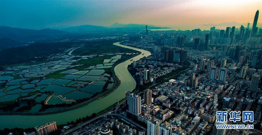无人机拍摄的深圳和香港落马洲河套地区及周边风光(2018年5月23日摄)。新华社记者 毛思倩 摄