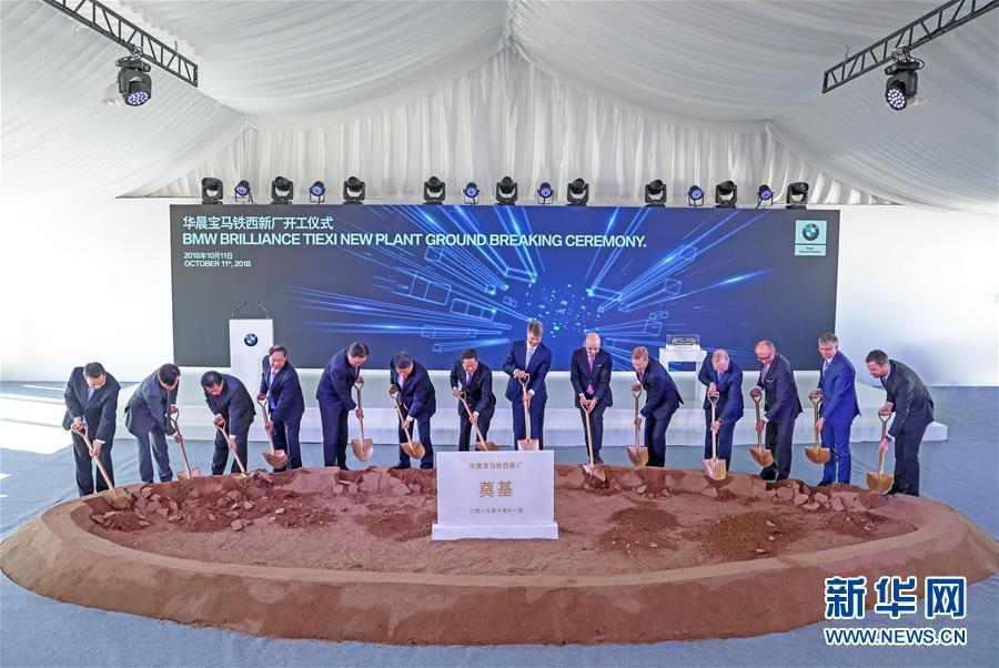 2018年10月11日,嘉宾为华晨宝马铁西新工厂奠基。新华社发