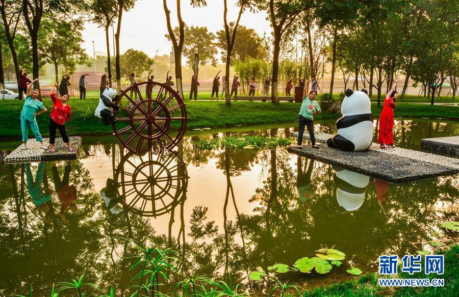 市民在成都市三环路北四段的熊猫绿道锻炼(2018年6月12日摄)。新华社发(林学美 摄)