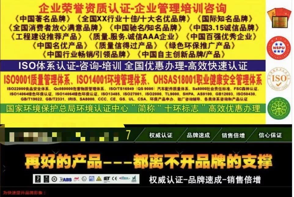一些企业身兼数十个商标认证,但其中多为虚假机构颁发,令人眼花缭乱(图源网络)