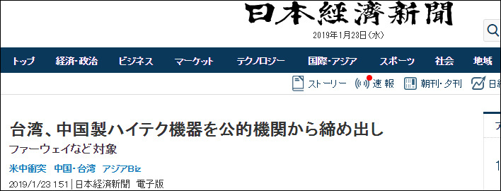 据《日本经济新闻》1月23日报道,该报从台当局“行政院资通安全处”的一名干部处获悉,台当局正在编制一份所谓“存在安全隐患”的大陆科技公司“黑名单”,预计将在今年3月底前出炉,华为当然是“榜上有名”。 ![]()
