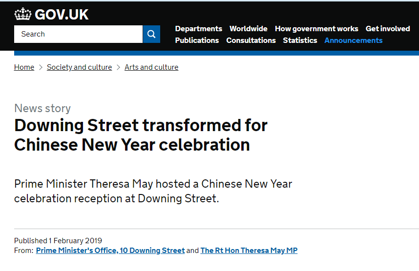 首相官邸官网报道 明天就是除夕啦!这几天,世界上许多国家也都和我们一样,进入共享中国农历春节欢庆的时刻。 据CGTN3日报道,当地时间1月31日,中国驻英国大使刘晓明大使和夫人应邀出席特蕾莎·梅举办的中国春节招待会,而这已是英国首相连续第7年举办春节招待会。 与往年不同的是——“丹凤呈祥龙献瑞,红桃贺岁杏迎春”,充满喜庆气氛的春联罕见地贴在唐宁街十号门前。