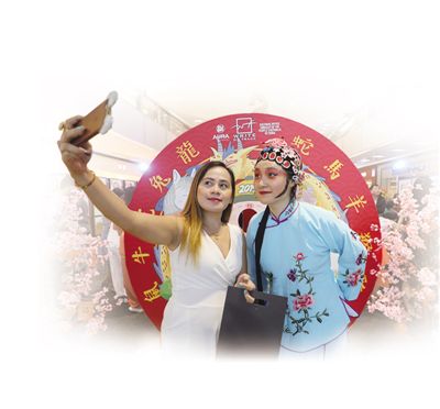在菲律宾马尼拉举办的“新春欢庆周”活动上,热心的现场观众和红溪礼示大学孔子学院的京剧表演志愿者自拍留念。 本报记者 赵益普摄