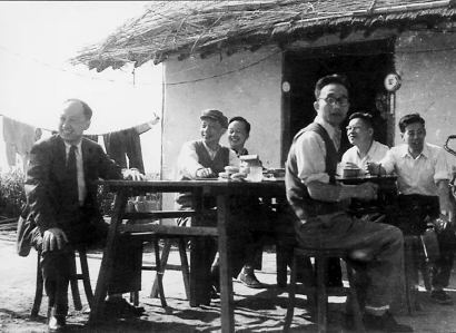 钱学森(左一)在上海南汇指导“T-7M”探空火箭发射。 资料照片