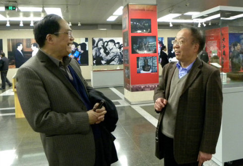 周公正(右)与朱克家(左)在知青博物馆展会上谈笑自若