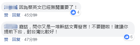 也有网友回答蔡英文的问话表示,因为蔡英文已经无关重要了↓
