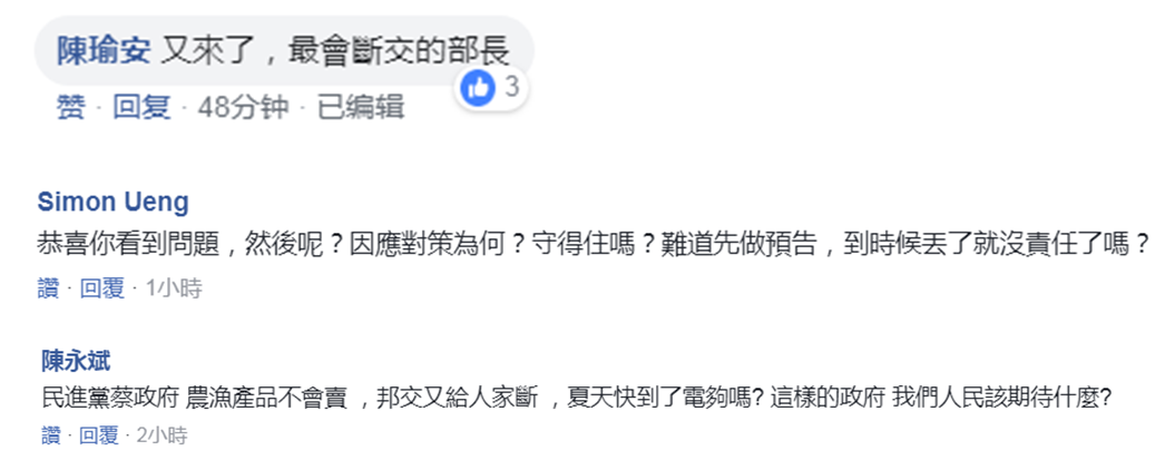 民进党当局上台至今,已经连失5个“邦交国”。岛内关于更多“邦交”不稳的声音频出,此前一直嘴硬称“邦交稳固”的蔡当局如今终于松口证实,部分“邦交国”动摇。 据台湾亲绿媒体《自由时报》4日报道,台“外交部长”吴钊燮今(4日)赴台“立法院”进行业务报告。关于“邦交”问题,他在会前受访时称,已掌握部分国家有(动摇)状况。台“外交部”依旧遵循管用伎俩“甩锅”称,不排除中国(大陆)打压的可能性。并称,将持续“做高度的努力”维系“邦交”。增加对“友邦”的投资和采购,协助发展政经建设及提供所谓人道援助。 此外,吴钊燮还对台湾日前缺席了世卫(WHO)流感疫苗选株会议表达了不满。据报道,世卫(WHO)流感疫苗选株会议2月21日召开,台“卫福部”直到当天凌晨1时许才收到邀请函,来不及参加。这也是台湾自2014年受邀以来首度缺席。 对于吴钊燮证实台当局“邦交”动摇一事,岛内网友讽刺吴是“最会‘断交’的‘部长’”;还有网友嘲讽,看到问题,然后呢?守得住吗?难道先预告就没有责任了吗?民进党当局农渔产品卖不出,“邦交”又断,夏天快到了,电够吗?这样的当局,民众该期待什么呢?↓