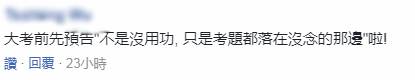 更有人对所谓如果没选上就是因为民进党“内斗”的说法讽刺称:大考前先预告“不是没用功, 只是考题都落在没念的那边”。