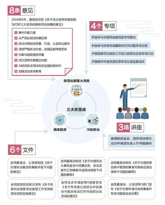 最高人民检察院工作报告 ——2019年3月12日在第十三届全国人民 代表大会第二次会议上 最高人民检察院检察长 张军 各位代表: 现在,我代表最高人民检察院,向大会报告工作,请予审议,并请全国政协各位委员提出意见。 2018年工作回顾 2018年是改革开放40周年,也是检察机关恢复重建40周年。在以习近平同志为核心的党中央坚强领导下,在全国人大及其常委会有力监督下,最高人民检察院坚持以习近平新时代中国特色社会主义思想为指导,全面贯彻党的十九大和十九届二中、三中全会精神,认真落实十三届全国人大一次会议决议,增强“四个意识”,坚持“四个自信”,做到“两个维护”,立足新时代人民群众对民主、法治、公平、正义、安全、环境等提出的更高要求,积极适应反贪转隶、检察职能调整,坚持讲政治、顾大局、谋发展、重自强,采取一系列主动跟进的思路举措,使转隶成为法律监督全面协调充分发展的转机,各项检察工作稳步向前。一年来,全国检察机关共批准逮捕各类犯罪嫌疑人1056616人,提起公诉1692846人,同比分别下降2.3%和0.8%;对刑事、民事和行政诉讼活动中的违法情形监督447940件次,同比上升22.4%;立案办理公益诉讼案件113160件。 ![]() 一、充分发挥检察职能,为大局服务、为人民司法 坚决贯彻党中央决策部署,把坚持以人民为中心体现到检察工作各方面,服务、促进“五位一体”总体布局和“四个全面”战略布局的落实。 坚决维护国家政治安全和社会秩序。贯彻总体国家安全观,积极参与反渗透反间谍反分裂反恐怖反邪教斗争。会同有关部门制定司法解释,细化恐怖活动和极端主义犯罪案件定罪标准。新疆反恐维稳任务繁重,我们跨省抽调检察官赴疆支持严格依法办案。持续严惩故意杀人、绑架等严重暴力犯罪,起诉59717人,同比下降5.9%。起诉抢劫、抢夺、盗窃等多发性侵财犯罪361478人,同比下降6.9%。坚决惩治“套路贷”“校园贷”所涉诈骗、敲诈勒索等犯罪,起诉2973人。依法维护网络秩序,起诉电信网络诈骗犯罪43929人,同比上升29.3%,会同公安部加强境外执法司法合作,郭世闵、席欢等跨国电信网络诈骗犯罪嫌疑人被绳之以法;起诉利用网络赌博、传播淫秽物品、泄露个人信息等犯罪15003人,同比上升41.3%。对社会高度关注的驾车撞人、砍杀无辜等重大恶性案件,指导地方检察机关迅速介入,依法批捕起诉。公交车坠江悲剧发生后,会同有关部门制定指导意见,对严重妨害公交车辆安全驾驶的行为,按以危险方法危害公共安全罪从严惩处,法治社会谁都不能任性。 ![]() ![]() ![]() 以高度的责任感投入扫黑除恶专项斗争。会同有关部门发布通告,制定指导意见,明确11类打击重点,对69起重大涉黑案件挂牌督办。批捕涉黑犯罪嫌疑人11183人,已起诉10361人;批捕涉恶犯罪嫌疑人62202人,已起诉50827人。洛宁“十八兄弟会”、闻喜“侯氏兄弟”、白城史淼等为非作歹、残害百姓的涉黑团伙受到严惩。坚持以事实为根据、以法律为准绳,是黑恶犯罪一个不放过,不是黑恶犯罪一个不凑数。侦查机关以涉黑涉恶移送审查起诉,检察机关不认定9154件;未以涉黑涉恶移送,依法认定2117件。推广浙江、江西、河南等地做法,省级检察院统一对涉黑和重大涉恶案件严格把关,确保办案质量。重拳“破网打伞”,起诉黑恶势力犯罪“保护伞”350人。 ![]() 主动服务打好三大攻坚战。与银保监会、国务院扶贫办和生态环境部会商,研究制定“8条意见”。积极参与互联网金融风险专项整治,会同有关部门制定司法解释,严惩破坏金融秩序犯罪。起诉非法吸收公众存款、集资诈骗、传销等涉众型经济犯罪26974人,同比上升10.9%,同时力促追赃挽损。加大知识产权司法保护力度,挂牌督办32起重大典型案件,起诉侵犯专利、商标、商业秘密等犯罪8325人,同比上升16.3%。严惩扶贫领域腐败,起诉侵吞、私分扶贫资金等犯罪1160人。与国务院扶贫办共同制定司法救助支持脱贫攻坚实施意见,推广山东、广西、四川、甘肃等地做法,将因案致贫返贫纳入司法救助,发放救助金4214户4905万元。贯彻全国人大常委会决议,积极参与污染防治攻坚战,牵头制定办理环境污染刑事案件规范,起诉破坏环境资源犯罪42195人,同比上升21%。会同水利部组织黄河流域9省区检察机关与河长制办公室开展“携手清四乱、保护母亲河”专项行动。建立长江沿线11省市检察机关协作机制,出台服务长江经济带发展“10项举措”,指导安徽、湖北等地检察机关办理了一批跨省倾倒固体废物、非法排污、非法采砂等案件,共护“一江碧水、两岸青山”。 ![]() ![]() 平等保护各类企业合法权益。认真学习贯彻习近平总书记在民营企业座谈会上的重要讲话精神,在司法办案中对国企民企、内资外资、大中小微企业落实好“平等”二字。会同全国工商联调研座谈,充分听取民营企业家意见。从已发3个司法文件中归纳出11项具体检察政策,严格区分正当融资与非法集资、产权纠纷与恶意侵占、个人财产与企业法人财产等界限,强调审慎采用限制人身和财产权利的办案强制措施。将4起保护企业合法权益典型案例印发全国检察机关参照。依法办理张文中等涉产权案,直接督办涉产权刑事申诉68件。坚持实事求是,全案错了全案纠正,部分错了部分纠正,既不遮丑护短,也不“一风吹”。 ![]() 积极配合国家监察体制改革。一年来,监检衔接配合