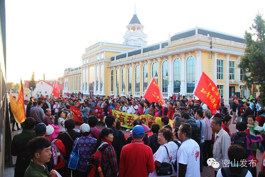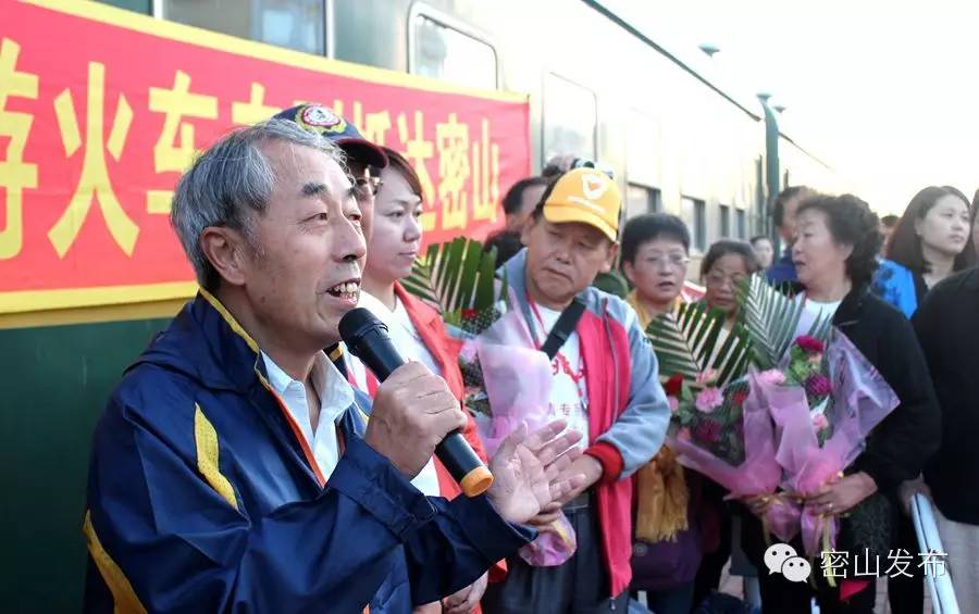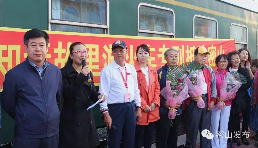 天刚蒙蒙亮,知青专列驶进密山站 “……呜……呜……”,9月9日凌晨4:35时,随着汽笛鸣叫,一辆由12节卧铺车厢组成的知青旅游专列准时驶进密山站。彩旗、锣鼓、歌舞相应成趣,密山市政府组织的迎接仪式喜庆、热烈,人们欢呼着、雀跃着,站台沸腾了…… 隆重的欢迎仪式上,密山市政府副市长陶然、旅游局局长陈婧和本次活动负责人王妙法、王永隆分别致辞,双方互赠了纪念品。