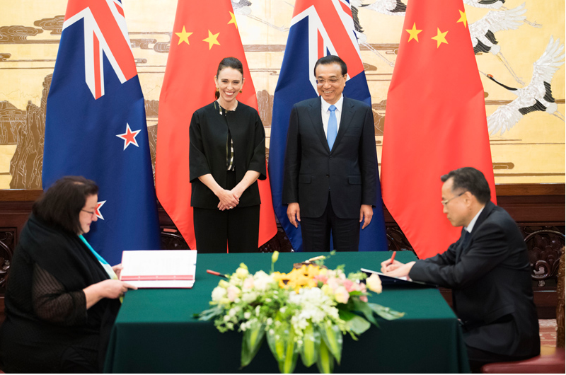 值得注意的是,英国政府近日也得出结论,认为华为5G设备风险可控,美国CNN在其头条位置评论称,“美国对华为的战争可能造成‘五眼联盟’裂痕”。 新西兰2008年成为首个与中国签署自由贸易协定的西方国家,也是最早一批加入“一带一路”倡议的西方发达国家。目前,中国是新西兰最大的贸易伙伴,也是新西兰乳制品和其他农产品的主要客户。 会谈后,两国总理共同见证双方税务、农业、财政金融、科研等领域合作协议的签署。双方发表了中新领导人关于气候变化问题的声明。