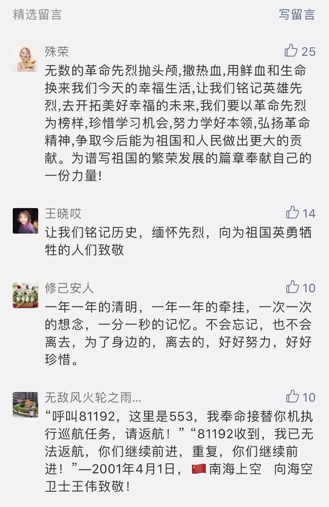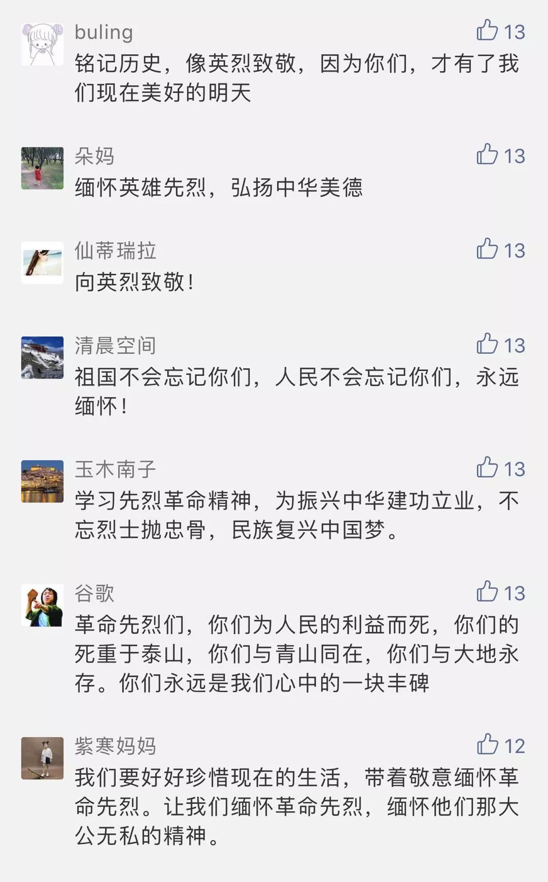 正是无数烈士用热血和生命点亮的明天 在2019网上祭英烈活动中 广大网友纷纷留言 “祭奠英烈,我们从未忘记” ![]() ![]() ![]() ![]()