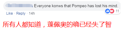与此同时,徐大使所说的那句“蓬佩奥已经失去理智”,赢得了外国网友普遍赞同。有人调侃道: