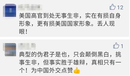 在美国驻华大使馆官方微博发布的蓬佩奥有关言论下方,有中国网友还“科普”了一段历史: 一方面对美国在拉美所作所为“选择性失忆”,一方面却对中国大肆污蔑,蓬佩奥此行中的“两面派”做法无疑也让美国网友感到了“丢脸”: